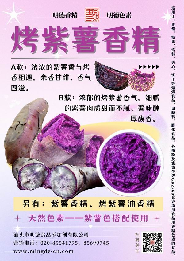 明德 紫薯、紅薯香精 一系列產品 香味醇厚,耐溫性好(耐高溫),適用性廣。在數(shù)十年的市場考驗中得到客戶朋友們的喜愛與認可,歡迎有興趣的廠家朋友們與我們聯(lián)系 咨詢!